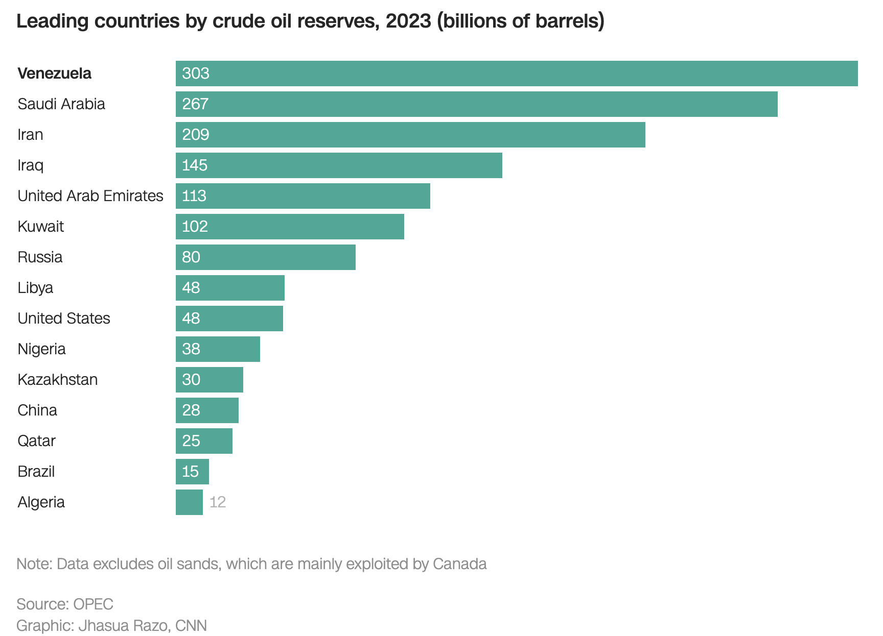 ๋ฏธ๊ตญ ์๋์ง์ ๋ณด์ฒญ(EIA)์ ๋ฐ๋ฅด๋ฉด ๋ฒ ๋ค์์๋ผ๋ ์ฝ 3,030์ต ๋ฐฐ๋ด์ ๋ฌํ๋ ์์ ๋ฅผ ๋ณด์ ํ๊ณ ์์ผ๋ฉฐ, ์ด๋ ์ ์ธ๊ณ ๋งค์ฅ๋์ ์ฝ 5๋ถ์ 1์ ํด๋นํ๋ค. ์ด ๋ฐฉ๋ํ ์์ ์์ฐ์ ํฅํ ๋ฒ ๋ค์์๋ผ์ ๋ฏธ๋์์ ํต์ฌ์ ์ธ ์ญํ ์ ํ ๊ฒ์ผ๋ก ๋ณด์ธ๋ค.