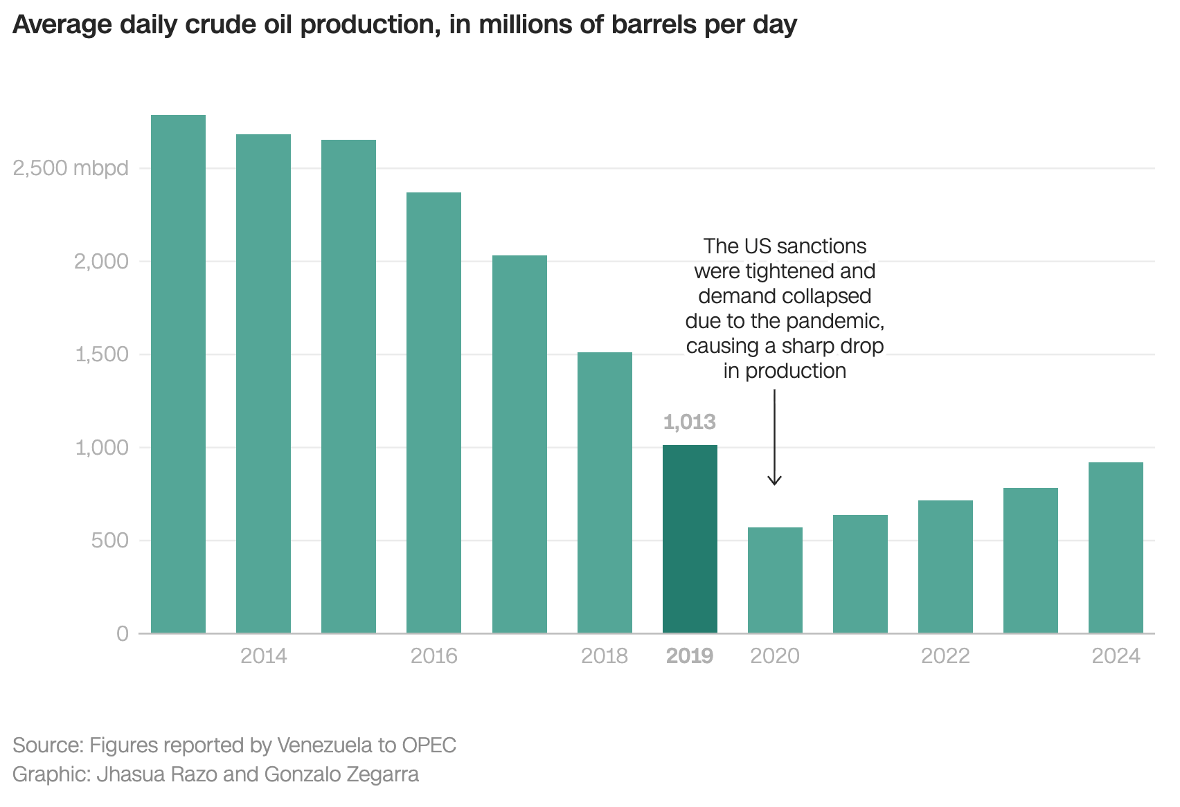 The United States, the worldโs largest oil producer, has light, sweet crude, which is good for making gasoline but not much else. Heavy, sour crude like the oil from Venezuela is crucial for certain products made in the refining process, including diesel, asphalt and fuels for factories and other heavy equipment. Diesel is in tight supply around the world โ in large part because of sanctions on Venezuelan oil.